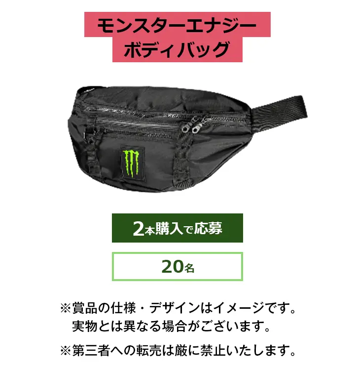・モンスターエナジー ボディバッグ1個:2本購入で応募 / 20名当選