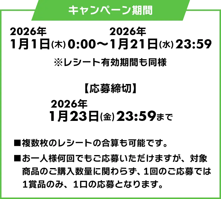 レシート有効期間:2026年1月1日(木)~ 1月21日(水)23:59