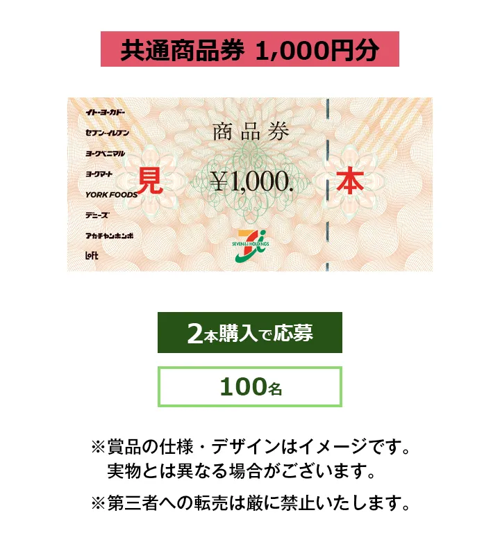 ・共通商品券1,000円分 1枚:2本購入で応募/ 100名当選