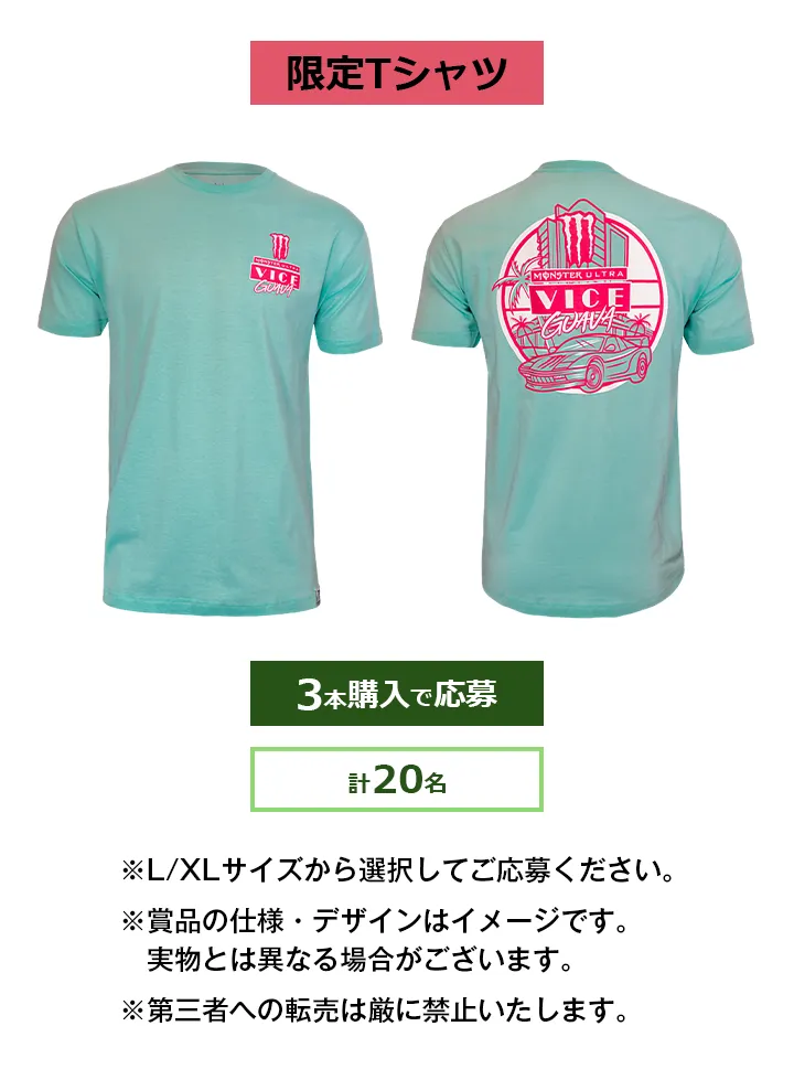 ※日本標準時応募規約モンスターエナジージャパン合同会社(以下、「モンスターエナジー」といいます。)が運営する「ウルトラバイスグァバ 限定ギアを手に入れろ」キャンペーン(以下、「本キャンペーン」といいます。)は、本応募規約の下、厳正に行われるものです。本キャンペーンをご利用頂くにあたっては、以下の応募規約をよくお読み頂き、本応募規約にご同意頂けない場合にはご応募をお控え下さい。応募者は、応募と同時に、本応募規約に同意したものとみなされます。