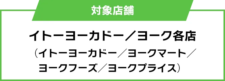(1) キャンペーン期間中にイトーヨーカドー、ヨーク各店(ヨークマート、ヨークフーズ、ヨークプライス)にて対象商品を購入
