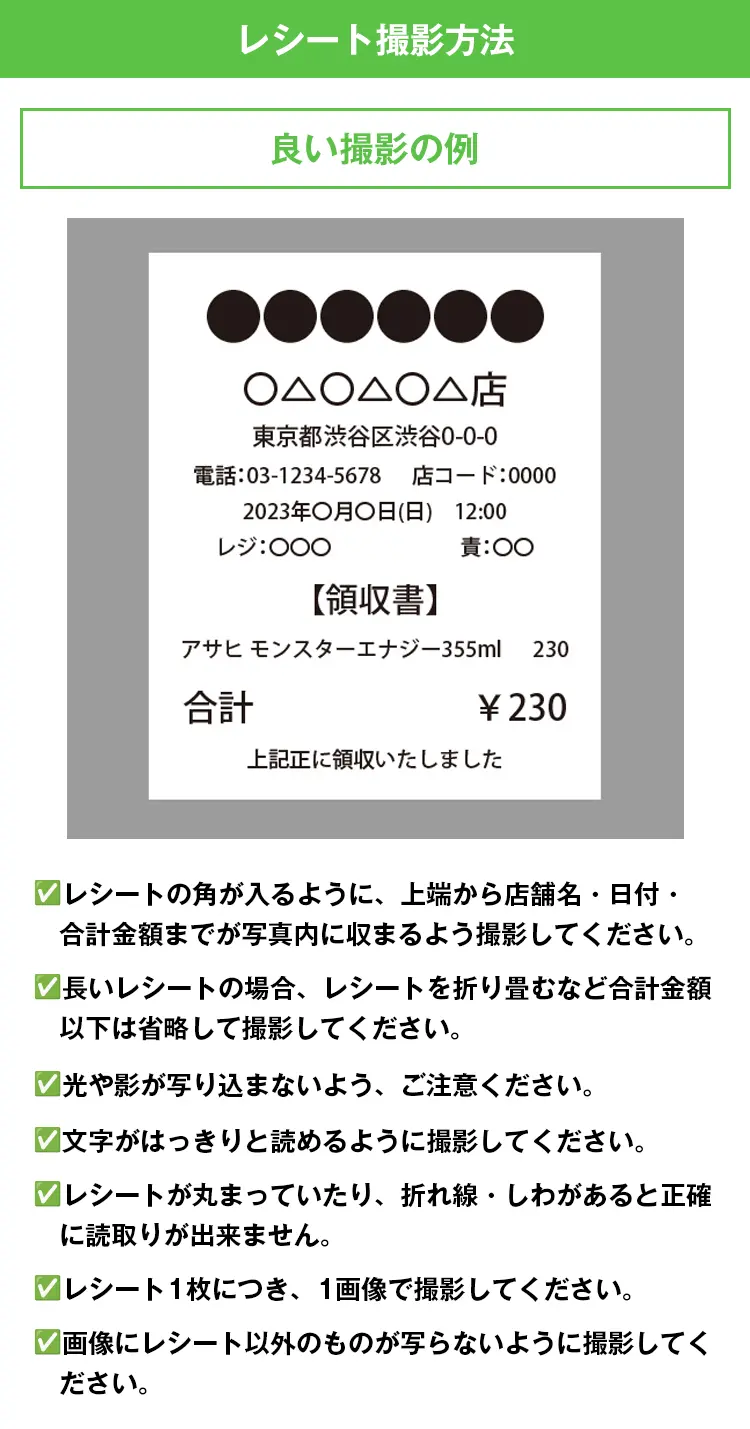 注意事項・レシートの写真の添付がない場合、応募は無効となりますのでご注意ください。