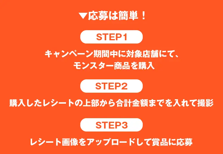 (1) キャンペーン期間中に対象店舗にて対象モンスター商品を購入